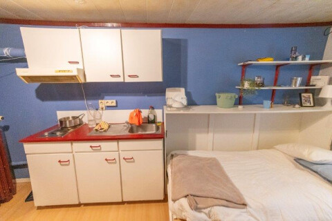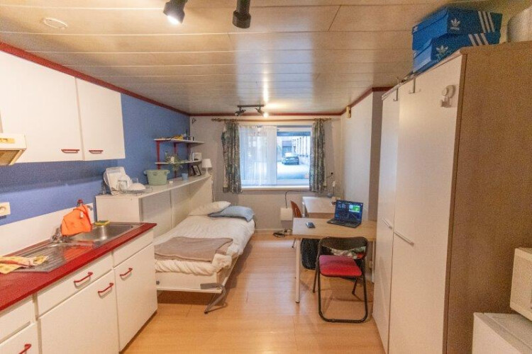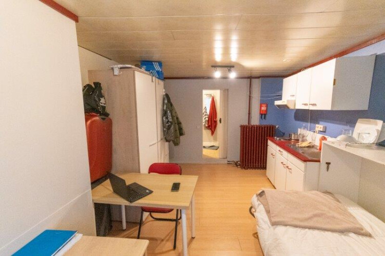 De studio beschikt over een kitchenette, aparte badkamer (met lavabo, douche en toilet) en is volledig gemeubeld (bed, bureau, kleerkast, tafel, stoelen, microgolfoven, frigo, … ).