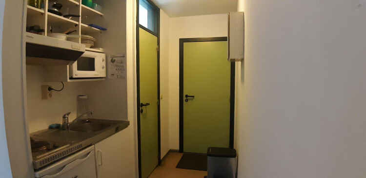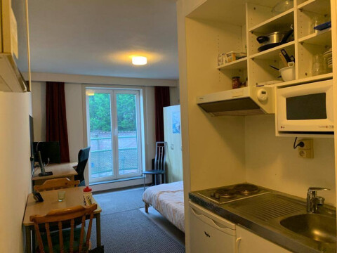 Leef-/slaapruimte, badkamer, kitchenette, beveiligde fietsenstalling.