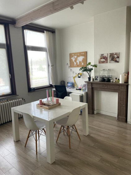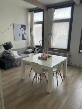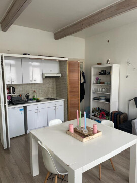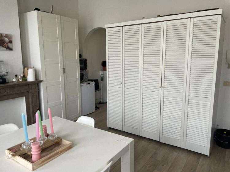 Te huur bemeubelde instapklare grote studio omvat living/ruimte met een ingebouwde keuken (kookfornuis, afwasbak, dampkap, aanrek, frigo, keuken is al of niet af te schermen), aparte badkamer met ligbad, lavabo, wc en 1 slaapkamer. Centrale verwarming op gas, internet wifi, parlofoon aanwezig, veel lichtinval, hoge plafond die veel ruimte creëert, rustig, net en verzorgd (om 14d.poetsdienst voor centrale inkom en trappenhal), studio eventueel te delen met een 2de persoon, centraal gelegen te Gent nabij de Bijloke, overdekte fietsenstalling aanwezig aan de overkant van de straat.