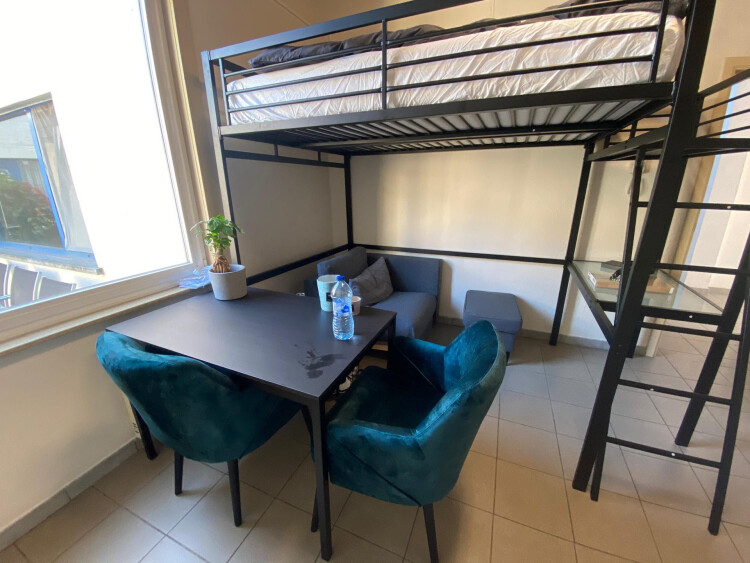 De studio is gelegen te melle op 10 mimuten van campus HO Gent bushalte op einde van de straat en kort bij een mooi park waar men tijdens de blok na tot kan trekken om rustige te studeren studio is nu bemeubelt de meubels kunnen over genomen worden zijn nieuwe zijn pas gekovht maar wegens omstandigheden kan de dochter niet op kot