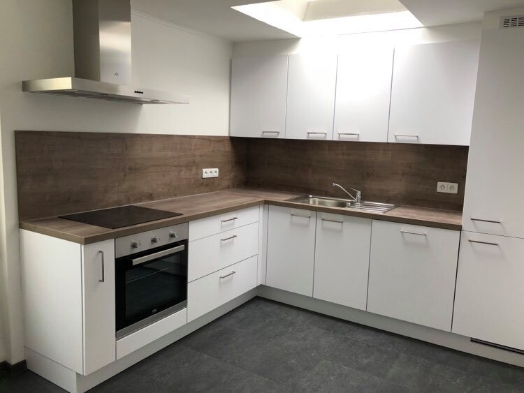Het appartement bestaat uit authentieke living, een ruime volledig vernieuwde keuken met inductieplaat, dampkap, koelkast, vriezer, oven en vaatwas. Ook verlichting is voorzien. In de slaapkamer is er een luik naar een ruime geïsoleerde zolder(grote berging). De badkamer bestaat uit inloopdouche, toilet, kast met lavabo en spiegel. Er is plaats en een aansluiting voor een wasmachine.