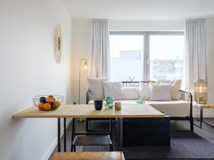 Deze studio is gelegen in een zeer rustige buurt aan het water in de Gentse kunstenbuurt met het historische centrum op wandelafstand.