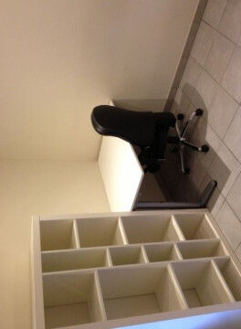 Studio is volledig ingericht en bestaat uit keuken (koelkast,diepvriezer,vitrokeramische kookplaat, dampkap, vaatwasser, combimicrogolf,servies/bestek.), Badkamer (douche, wc,wastafel,badkamermeubel) en is volledig gemeubeld (bureau, bureaustoel,boekenkast, kleerkast,eettafel met krukjes,hoogslaper voor 2 personen,....) + Centrale verwarming.