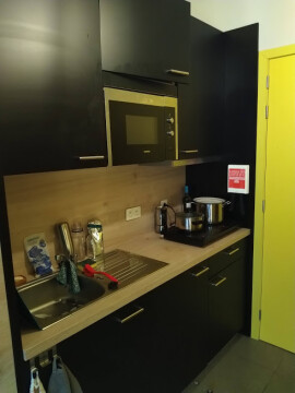 Timi Upkot is located close to HoGent faculties, the public transport of Gent Sint-Pieters and only 10 minutes by bike from Ghent city centre. The studenthome offers fully equipped kitchens, nicely decorated living areas (including sofas, Tvs and a billiard table) as well as a laundry room for all of the tenants.