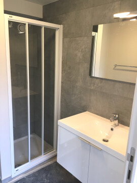 de kamer is gemeubileerd en heeft een aparte individuele douchecel met lavabo.