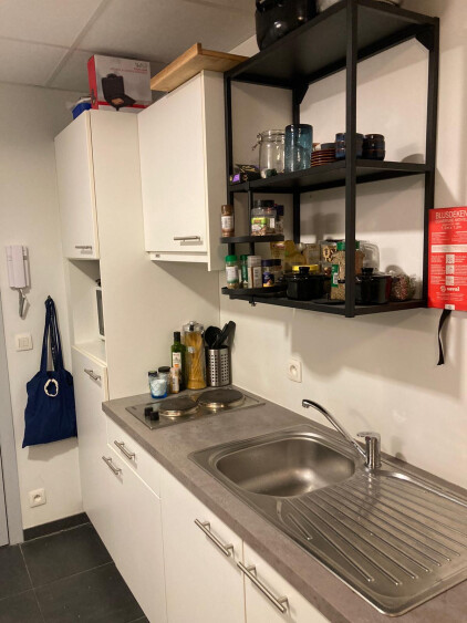 De studio/kamer heeft een oppervlakte van 22 m² en heeft een eigen douche, lavabo, kitchenette. Er is ook een gemeenschappelijke leefruimte/leefkeuken op de verdieping voorzien.