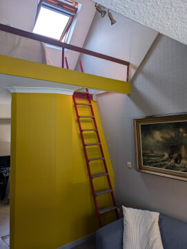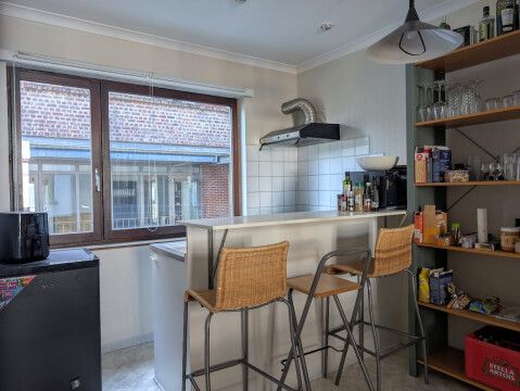 Duplex studio op 1e en 2e verdiep. 1e verdiep: kamer, keuken, douche en toilet. 2 verdiep: kamer + mezzanine , douche en toilet. Ideaal voor 2 vrienden of koppel, enkel studenten.