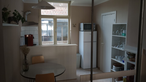 Duplex studio op 1e en 2e verdiep. 1e verdiep: kamer, keuken, douche en toilet. 2 verdiep: kamer + mezzanine , douche en toilet. Ideaal voor 2 vrienden of koppel, enkel studenten.