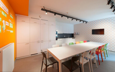 There is a common kitchen, just in case. You can also wash your clothes there as there is a washing machine and a dryer. And as an extra, you get access to the chill room, which includes a pool table, a table football, a tv and a kitchenette